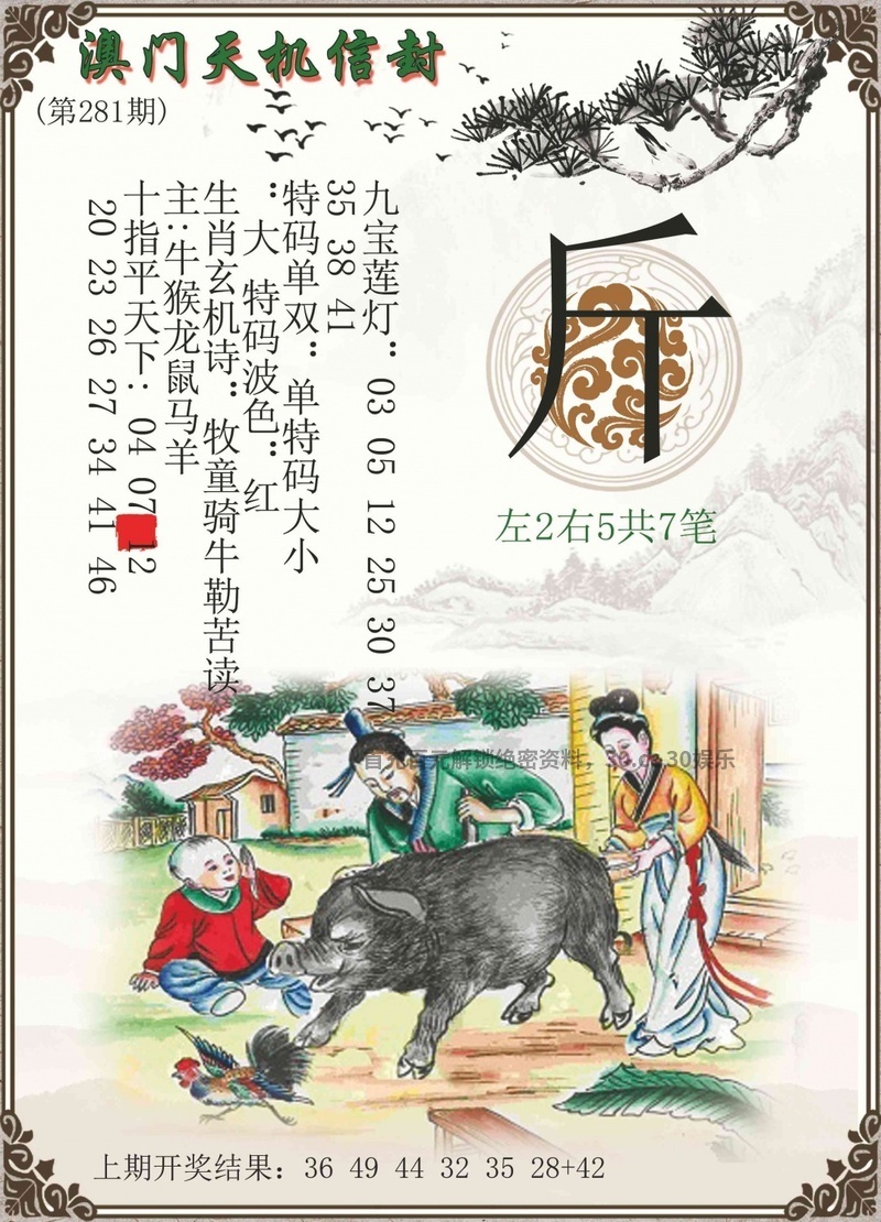 282期:七肖中特【羊虎鸡猴猪兔】开:牛41中