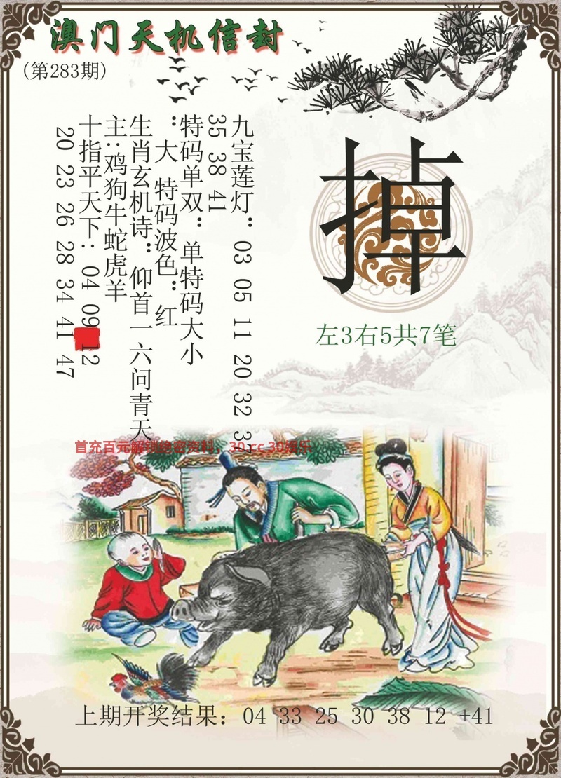 284期:必中七尾【0.1.2.3.4.6.7】开:牛41中