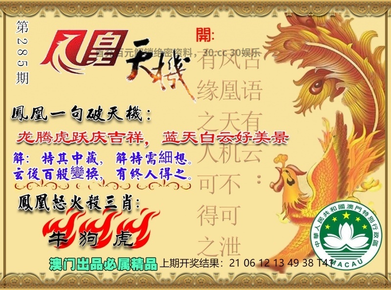 285期:七肖中特【虎龙鸡牛狗猴羊】开:马24错